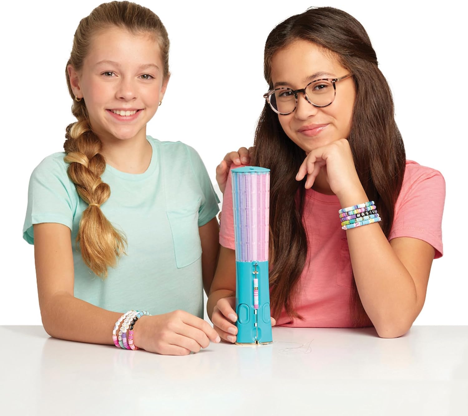 - MAKE OVER 30 BRACELETES WITH 23 BEAD COLORS: Rotate the bead carousel to align the desired color over the threading bar, then click the button to thread a bead. Use the included 2770 heishi beads while creating stunning accessories.